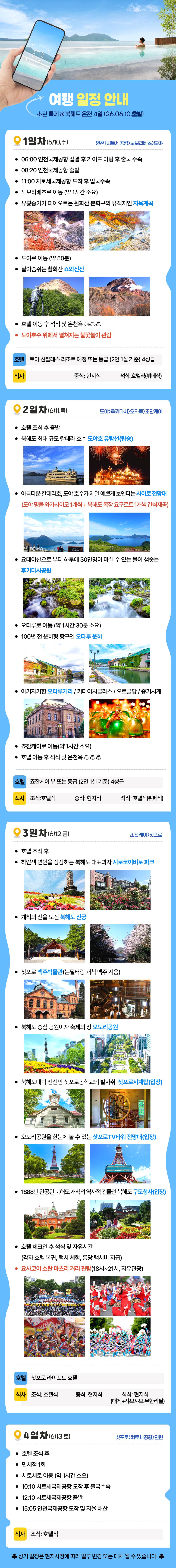 | 여행기간 | 2026년 06월 10일 (수) ~ 2026년 06월 13일 (토) 3박 4일 |